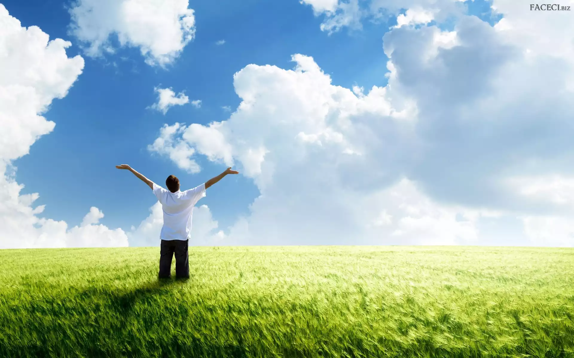 Chmury, Niebo, Zboża, Pole, Mężczyzna - faceci.biz